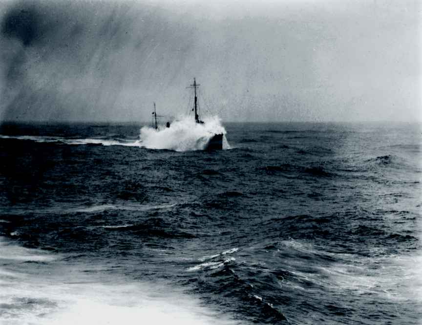 Plane Guard Duty One of the Mehan Destroyers seen from the deck of the USS Lexington. Cleveland Edwards Photo, 1937.