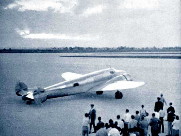 Leaving Miami that morning. The starboard navigation window is skinned over but the Loop antenna is back on Earhart's Electra.